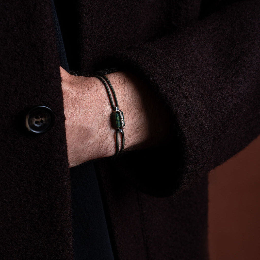 La Maison imagine une joaillerie contemporaine, reposant sur une architecture maîtrisée : cordon technique, fermoir inspiré de l’horlogerie et une pierre centrale, signature de la maison.